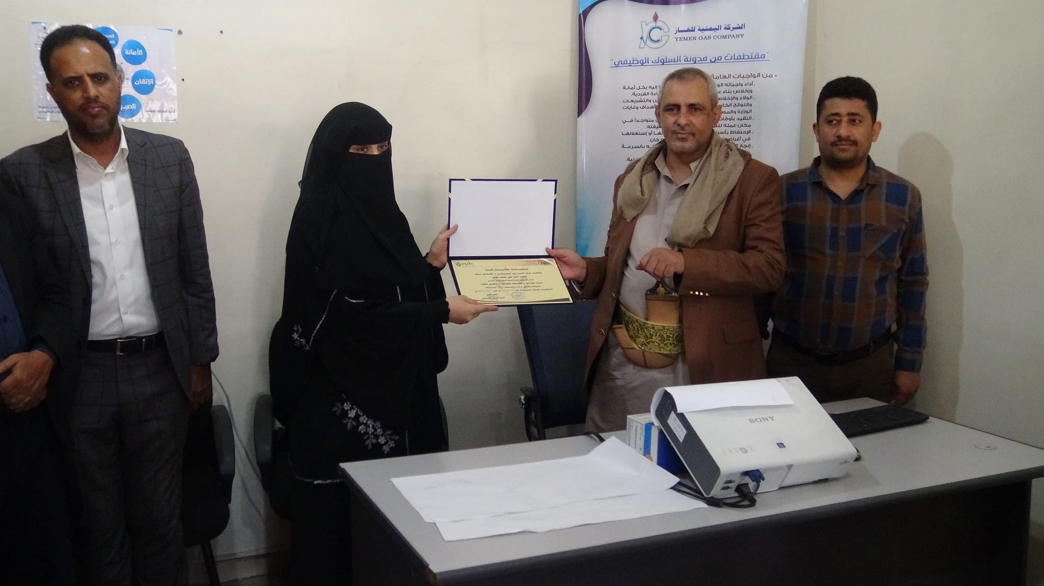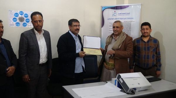 وفي الاختتام بحضور مدراء الدوائر بالشركة اليمنية للغاز، تم تكريم المتدربين بشهادات تقديرية.