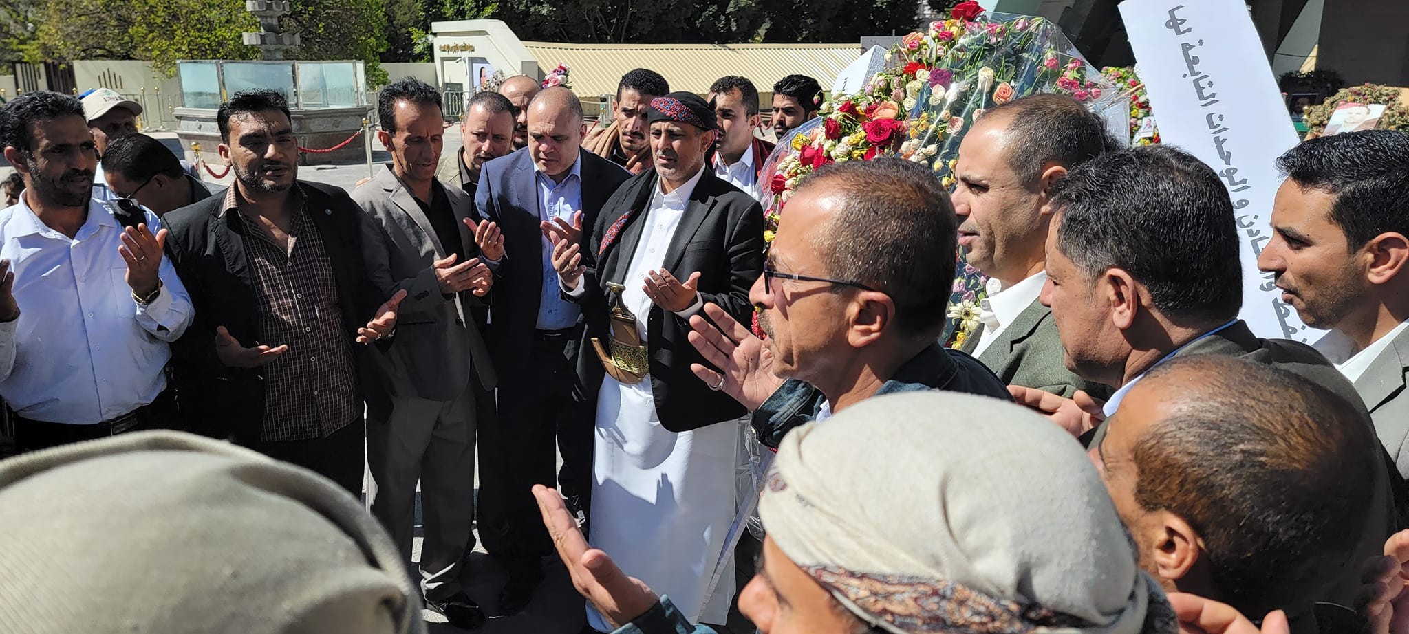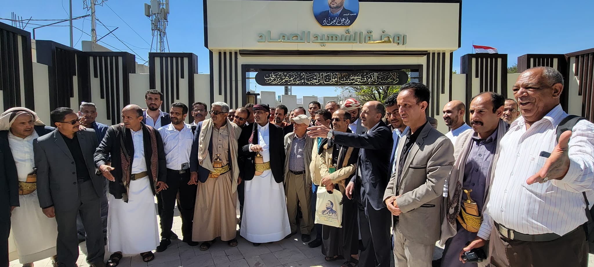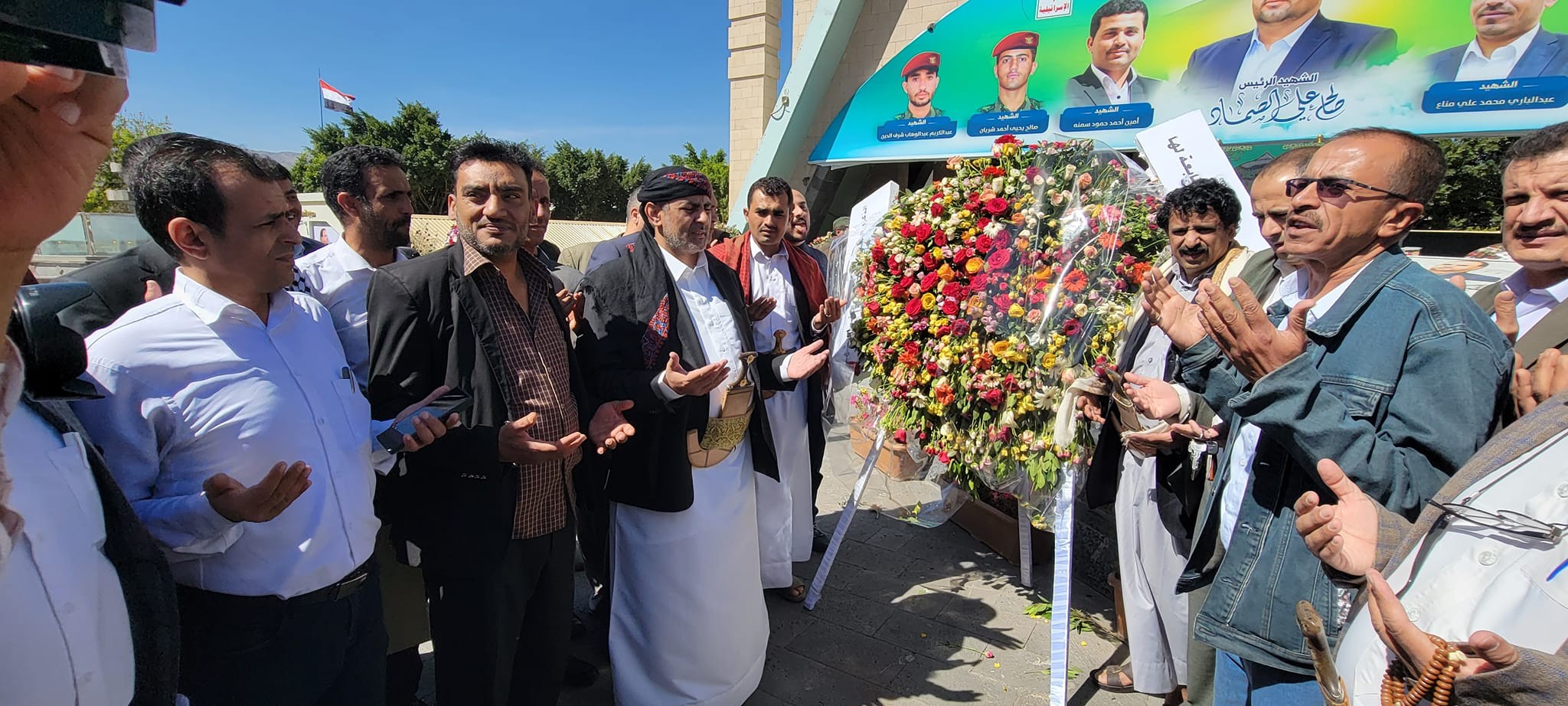 ووضع نائب وزير النفط- القائم بأعمال المدير التنفيذي للشركة اليمنية للغاز ياسر الواحدي، ومعه وكيل الوزارة ناصر العجي وعدد من قيادات وموظفو الوحدات التابعة للوزارة، إكليلاً من الزهور على ضريح الشهيد الصماد ورفاقه وقرأوا الفاتحة على أرواحهم.