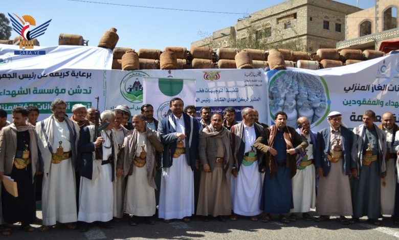 حيث سيتم توزيع تسعة آلاف و352 أسطوانة غاز منزلي لأسر الشهداء والمفقودين بال مجاناً، بدعم من الشركة اليمنية للغاز والتنسيق مع مؤسسة الشهداء.