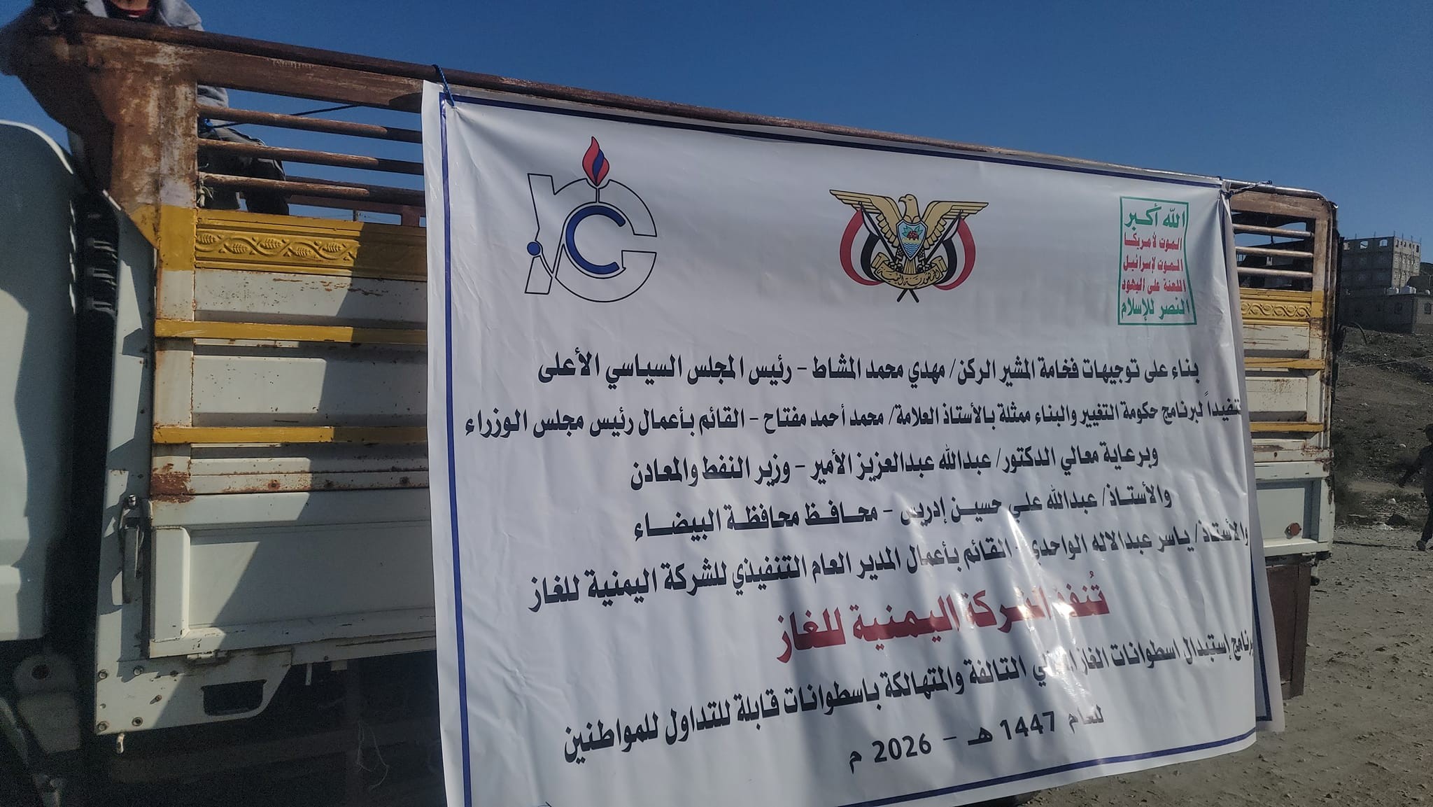 دشنت الشركة اليمنية للغاز، اليوم المرحلة الأولى من برنامج استبدال أسطوانات الغاز التالفة والمتهالكة بأسطوانات قابلة للتداول للمواطنين في محافظة البيضاء.