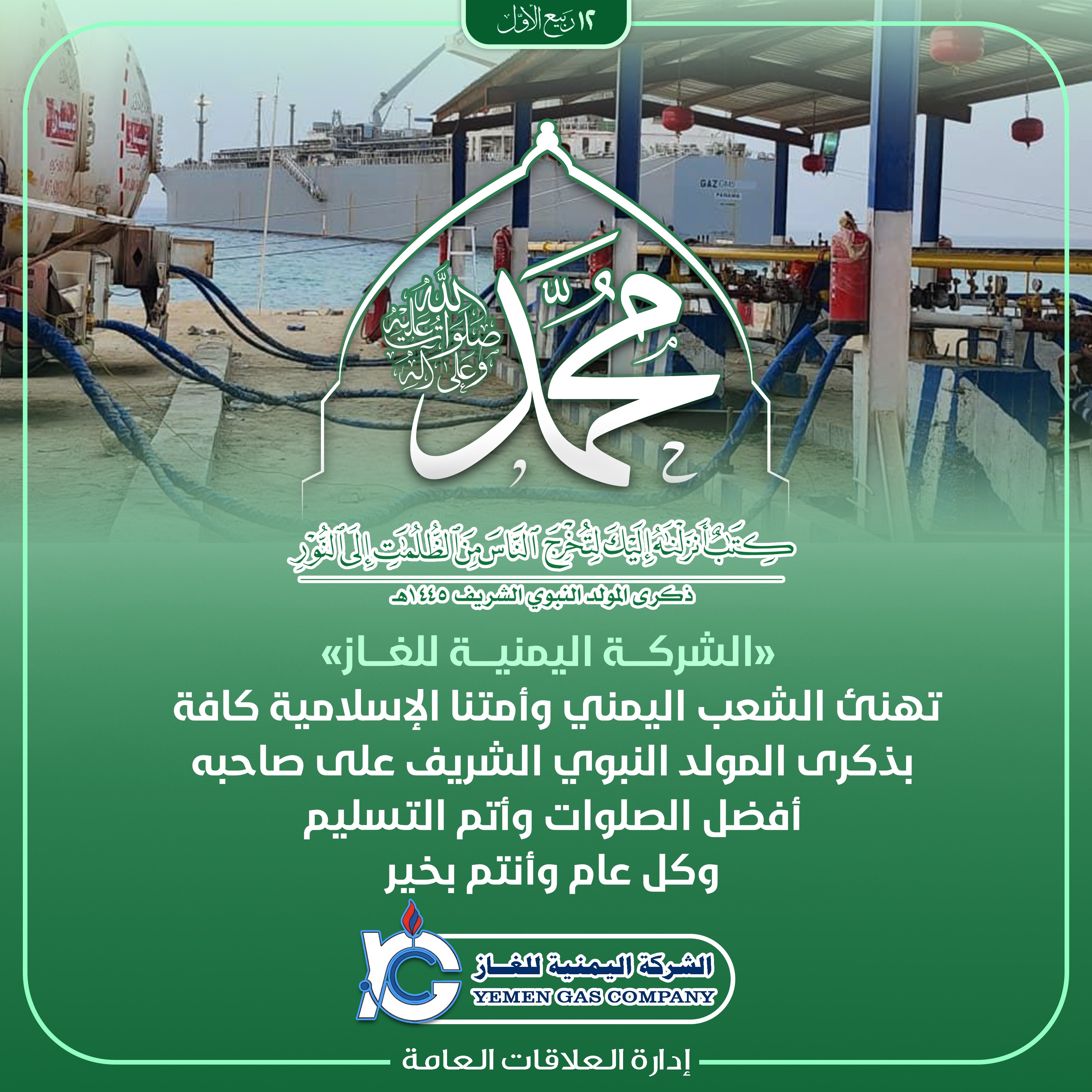 تهنئة الشركة اليمنية للغاز بمناسبة المولد النبوي الشريف