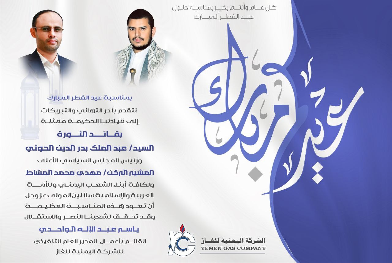 المدير العام التنفيذي للشركة اليمنية للغاز يهنئ القيادة الثورية والسياسية وكافة أبناء الشعب اليمني والامه العربية والإسلامية بمناسبة حلول عيد الفطر المبارك